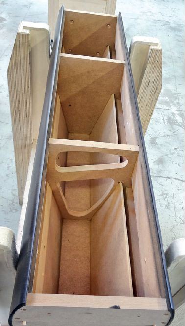 Suplement do testu Olympiki II z numeru kwietniowego. Obudowa wewnątrz; widać szczelinę nietypowego tunelu bas-refleks, biegnącego przez całą wysokość obudowy