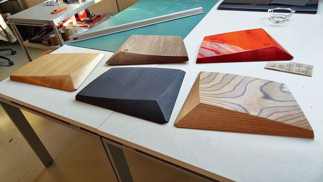 Wiele obudów, które mają wyglądać na zrobione z klepek z litego drewna, faktycznie składa się ze starannie oklejanego mdf-u. W przypadku Ex3my na pewno mamy do czynienia z dużymi i grubymi płatami litego czerwonego świerku i nie występują wyżej wspomniane problemy konstrukcyjne - dzięki szkieletowi z włókna węglowego, na którym zamocowano drewniane panele, niebędące w tym rozwiązaniu częściami "konstrukcji nośnej", lecz zamykającymi boczne "okna" szkieletu; zostały wycięte na najbardziej zaawansowanej obrabiarce CNC, która pozwoliła "wyrzeźbić" skomplikowaną bryłę.