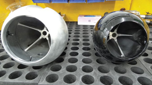 Wszystkie otwory i podcięcia w zewnętrznej "skorupie", wcześniej ukształtowanej na prasie, są wykonywane na maszynach CNC.