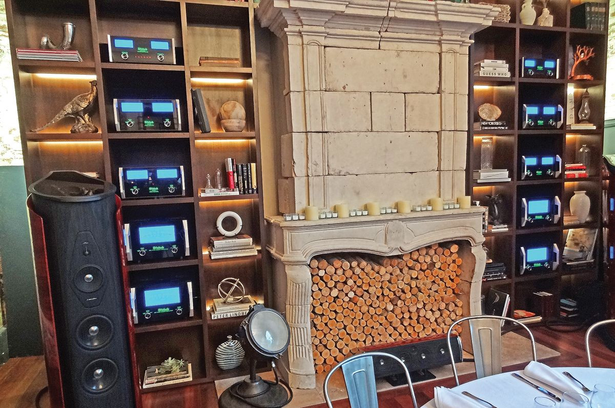 W największym salonie o wysokości dwóch kondygnacji zbudowano system wielokanałowy podłączony do całej baterii McIntoshów.