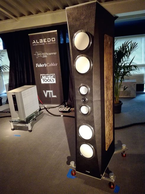 Nowe flagowe kolumny Atesia włoskiej wytwórni Albedo. Podłączone do monobloków VTL Siegfried Series II.
