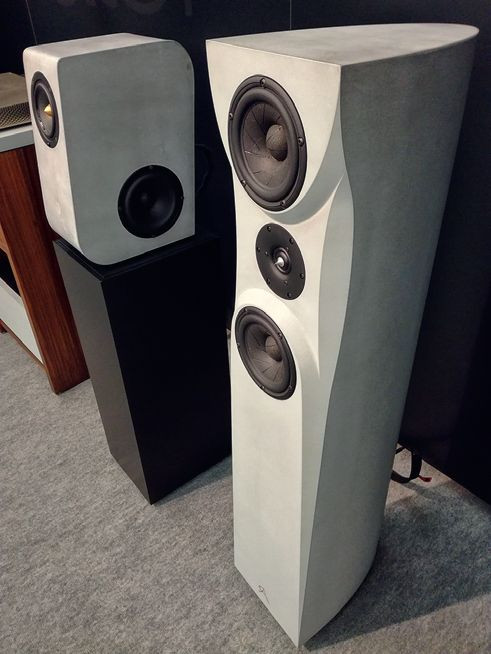Concrete Audio - podstawkowe F1 i podłogowe N1 - mają obudowy z betonu architektonicznego, a głośniki Scan-Speaka.