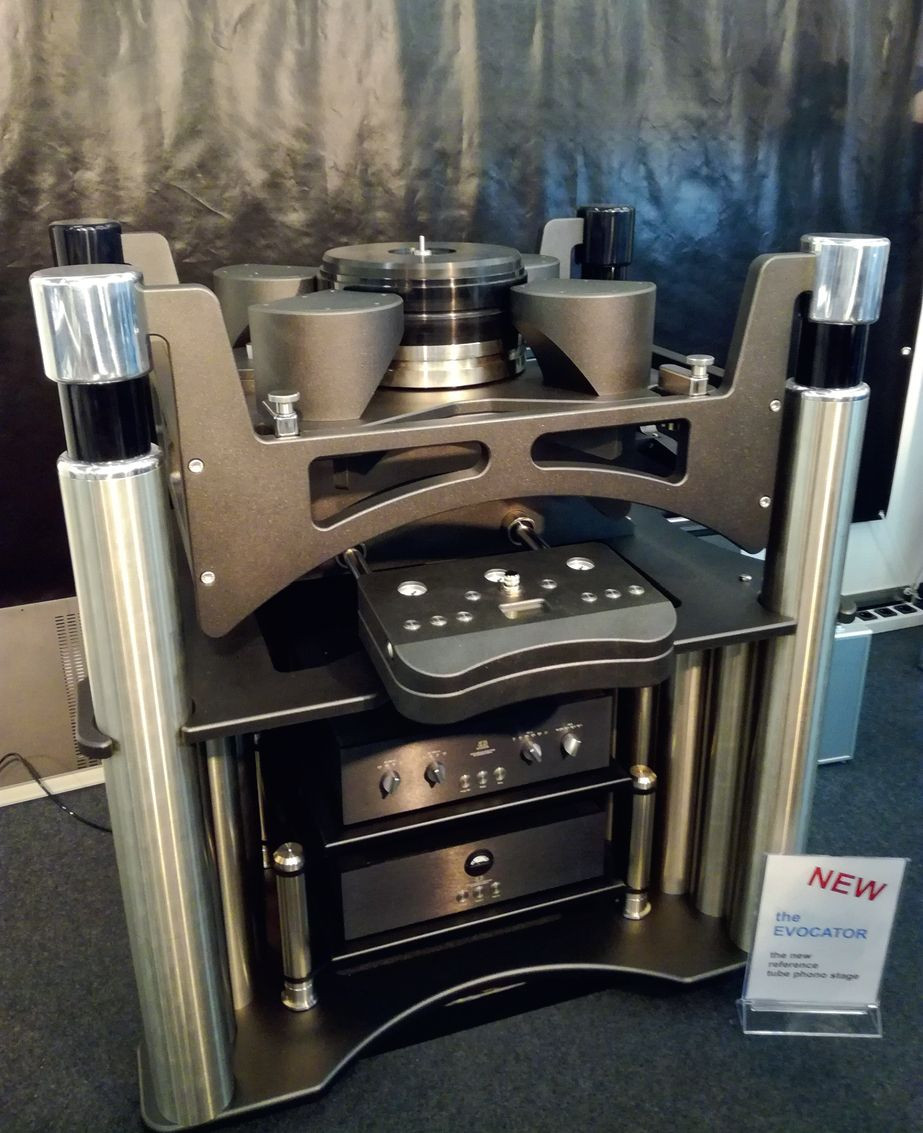 Monstrualny gramofon Acoustical Systems Apolyt. Niemiecka firma zaprezentowała też (premiera) przedwzmacniacz korekcyjny Evocator.