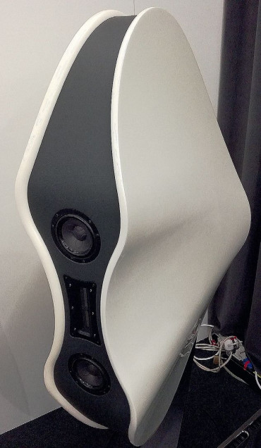 Pomysłów nie brakuje, a wspierają je coraz większe możliwości technologiczne w zakresie wykonania obudów. Tradycyjne "skrzynie" też mają swój urok, ale coraz częściej ustępują przed fantastycznymi kształtami. Z przodu widać sekcję średnio-wysokotonową, niskotonowy znajduje się z tyłu.