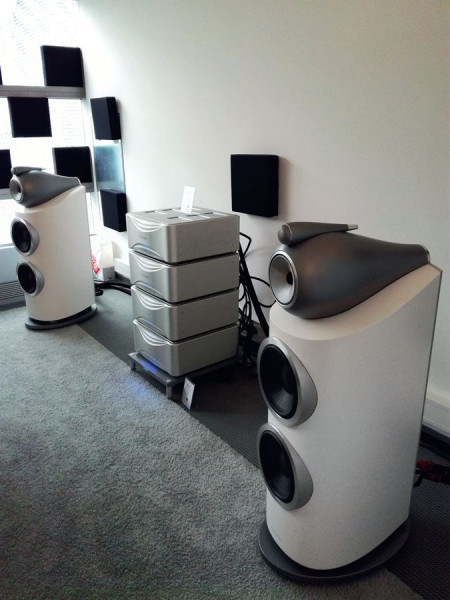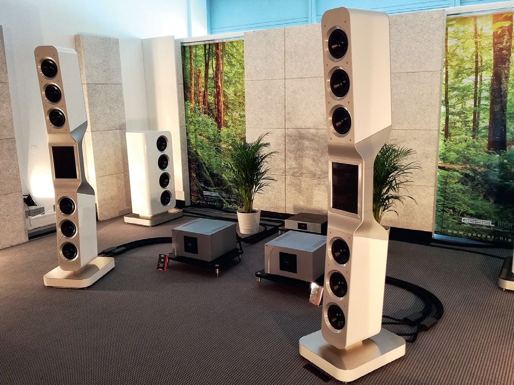 Kolumny Goebel Epoque Reference z subwooferami Baforce Petite active i elektroniką CH Precision. Do tego jeszcze kondycjoner Gigawatta.