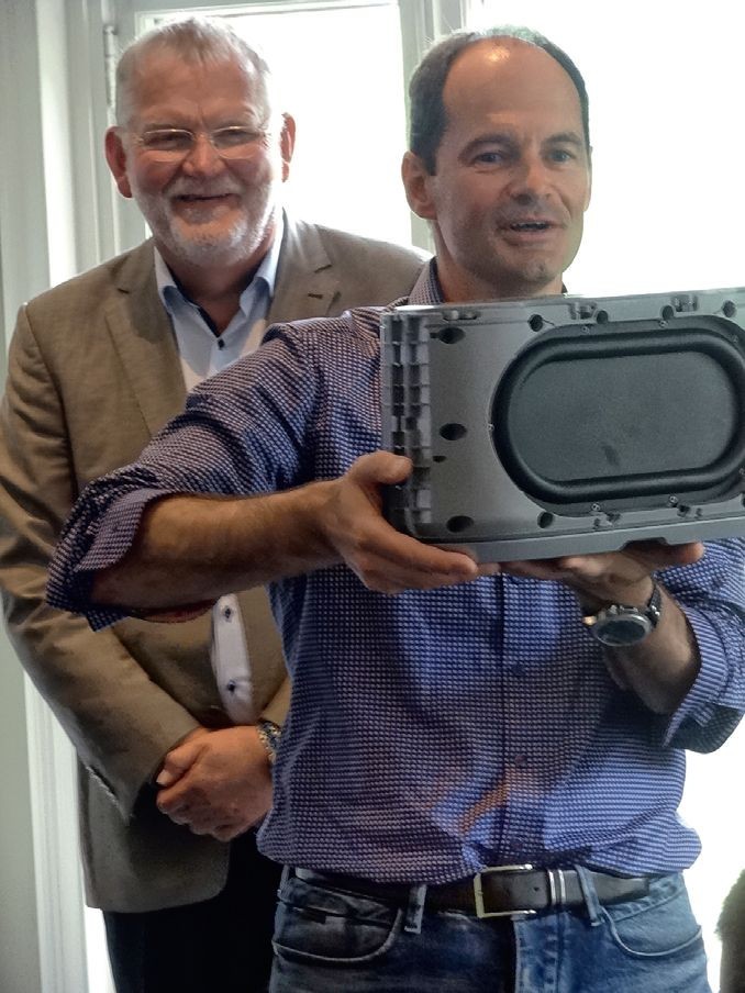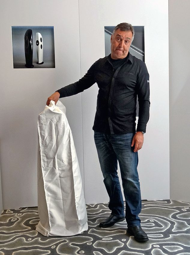Jurjen Amsterdam w koncernie Harmana zajmuje się... Harmanem; ta marka też zmieniła profi l i asortyment i też wyszła z rynkowych rewolucji obronną ręką, zajmując mocną pozycję jako specjalista od głośników Bluetooth – ale tych większych i bardziej "dorosłych" niż JBL; najnowszy model, którego symbolu i dokładnych parametrów podawać jeszcze nie możemy (embargo do września), będzie czymś największym i najlepszym w tej kategorii; widok od tyłu ukazuje dużą membranę bierną (jedną, ale oczywiście pracującą w ramach systemu stereofonicznego) - tyle możemy pokazać.