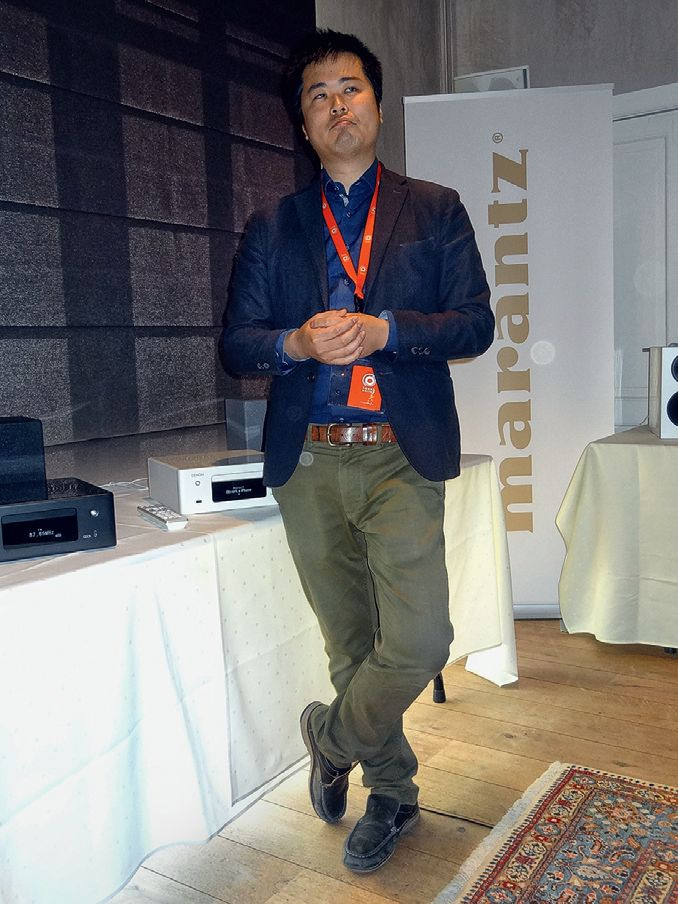 Trzeci gospodarz saloniku Sound United to Yoshinari Fukumisha, od dawna specjalizujący się w słuchawkach. Przemiły gość, a kiedy minę ma taką, jakby kogoś musiał ukarać samurajskim mieczem, to myśli nad celną odpowiedzią, która zetnie wszelkie wątpliwości. Dotychczas najlepszym modelem był AH-D7200, w cenie ok. 3500 zł, lecz rynek słuchawek rozwija się we wszystkie strony, więc teraz rolę fl agowca przejmą AH-D9200, dokładnie dwa razy droższe, a nieco tańsze są AH-D5200 kosztujące ok. 2500 zł. Na cenę AH-D9200 duży wpływ ma wykonanie muszli – z japońskiego bambusa – a?także japoński montaż. Kiedy u nas będzie druga Japonia, najlepsze słuchawki będą z polskiej wierzby płaczącej. Szopena zagrają jak żadne inne, więc Japończycy będą je kupować na wyprzódki.