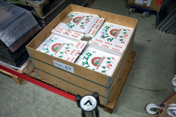 Opakowania od pizzy... Ich wielkość okazała się idealna, aby w ten sposób przechowywać i transportować talerze gramofonowe.
