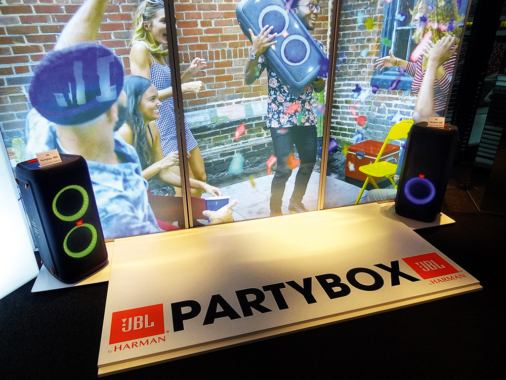 JBL Partybox, nowość dla młodych, którym symbol L100 nic już nie mówi, ale nie wystarczy im już do wspólnej zabawy mały przenośny głośniczek, a tym bardziej słuchaweczki.