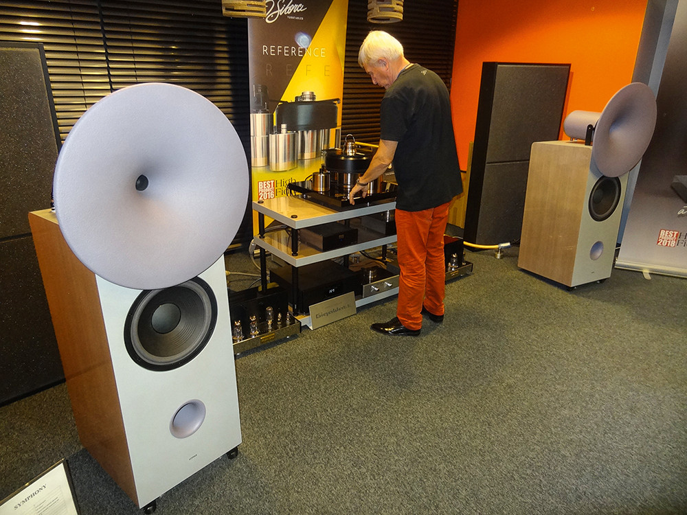Gramofonowi J.Sikora towarzyszyły kolumny firmy hORNS - nowy model Symphony. Inne konstrukcje tego producenta mają bardziej fantastyczne kształty, ale takie „utylitarne” połączenie 12-calowego nisko-średniotonowego, ze średnio-wysokotonową tubą, może okazać się najskuteczniejsze. I grało bardzo porządnie, naturalnie, bez tubowych naleciałości.