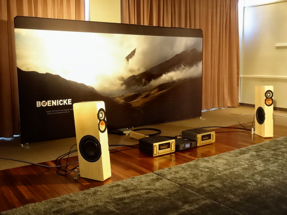 Firma Boenicke nie robi wielkich kolumn, ale nawet małymi robi wielkie wrażenie. Model W13 to konstrukcja najlepsza, wciąż relatywnie niewielka (w stosunku do „flagowców” innych firm), a w tak dużym pomieszczeniu wyglądająca dość niezwykle. Grała też zaskakująco... mocno basując, ale nie masując.