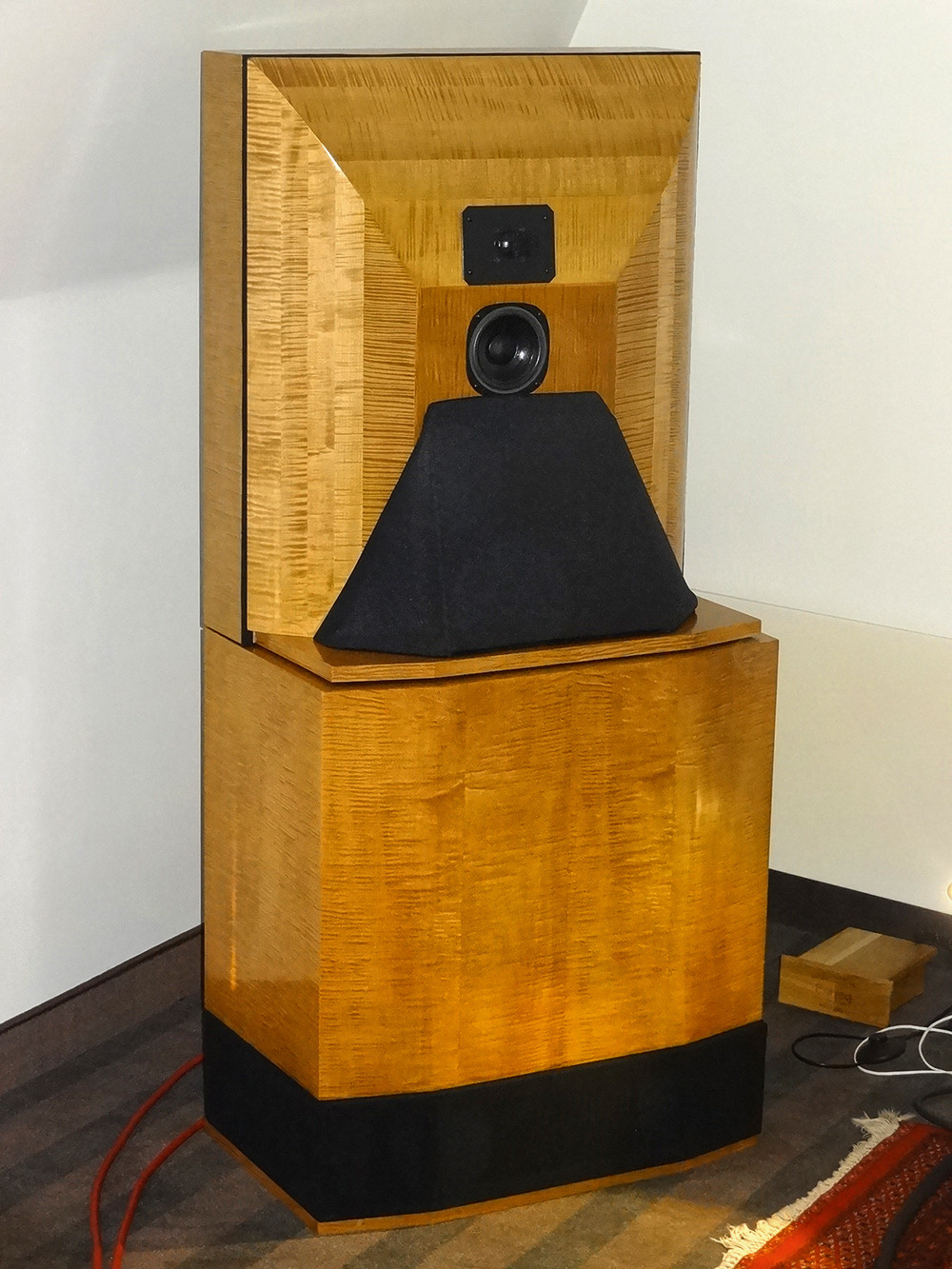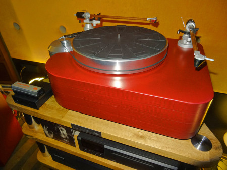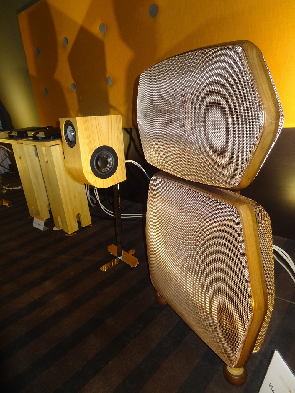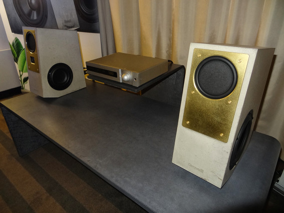 Nowa wersja Holophony Numer Dwa. Dźwięk piękny i charakterystyczny; mocna barwa, faktura lekko chropawa, środek bardzo bliski, góra dobrze wkomponowana, bas gęsty i konturowy, całość bardzo spójna. O tajnikach konstrukcji producent napisał dużo w przewodniku wystawy, m.in. pochwalił się (albo poskarżył), że przetestował kilka tysięcy zwrotnic. W takim razie współczuję i jestem rozczarowany. Zwykle tak dobry efekt uzyskuję po przetestowaniu kilkudziesięciu.