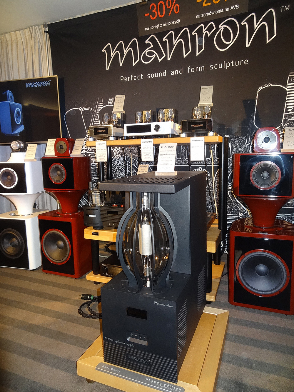 Manron zajarzył na maksa - monoblok na lampie GM100, prąd żarzenia prawie 20 A, szacowana moc wyjściowa - 150 W. Cena za parę - 999 000 zł.