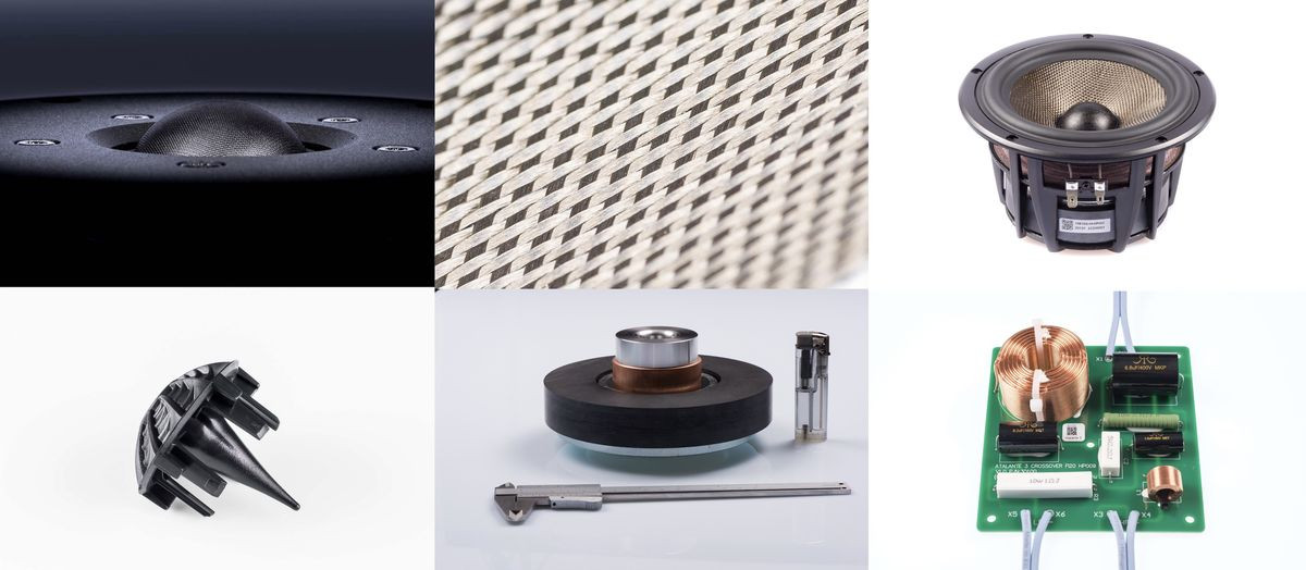 • 7 calowy (niespełna 18 cm) głośnia średnio-niskotonowy wykonany w technologii BSC (Basalt Sandwich Construction), stanowiącej najlepszy możliwy balans między sztywnością i niską masą własną, o konstrukcji zapewniającej dobre tłumienie oraz szybką i gładką responsywność w zakresie dynamiki basu.