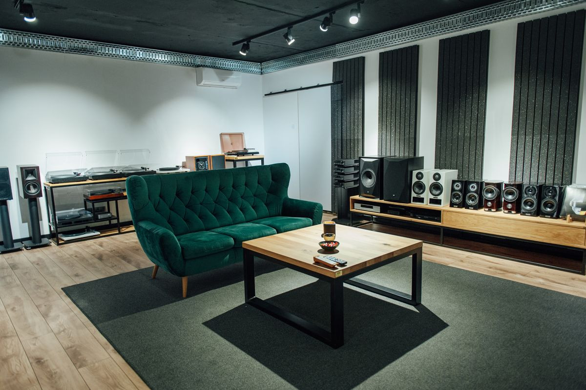 Mimo wprowadzenia charakterystycznych elementów rozpraszająco-tłumiących, akustyka przypomina typowe warunki domowe, stąd ocena właściwości brzmieniowych samego sprzętu może być rzetelna i związana z jego przeznaczeniem. W innych pomieszczeniach można wstępnie zapoznać się ze sprzętem, jest wystawiony w sposób uporządkowany i wygodny, przy dobrym oświetleniu.