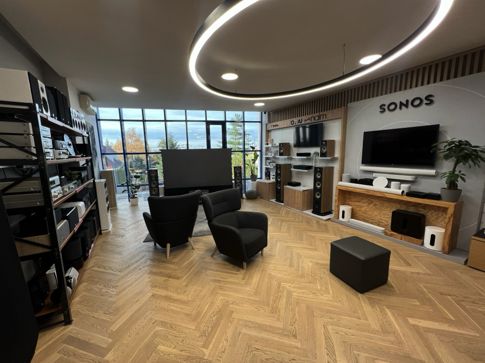Przestrzeń salonu dostępna dla klientów została zaaranżowana na dwóch piętrach, z dbałością o warunki akustyczne i komfort odsłuchu. Klienci będą mogli nie tylko zapoznać się z ofertą topowych marek audio-wideo, lecz także posłuchać ich brzmienia w warunkach zbliżonych do domowych w czterech salach odsłuchowych i prezentacyjnych.