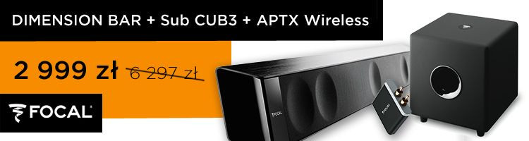 Od poniedziałku 6 marca tylko w Salonie Focal w Warszawie zestaw Dimension Bar + SUB CUB 3 + odbiornik Bluetooth APTX Wireless w promocyjnej cenie.