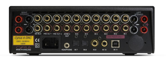 Cyrus 6 DAC jest wielokrotnie nagradzanym wysokiej jakości wzmacniaczem i konwerterem cyfrowo-analogowym oferującym 57 wat na kanał. Jego wbudowany DAC czyta pliki 24-bitowe i przekształca je na muzykę wysokiej rozdzielczości. Wyposażony w sześć wejść analogowych, wysokiej jakości wzmacniacz słuchawkowy, wyjście strefy 2 i wyjście przedwzmacniacza umożliwia współpracę z wieloma urządzeniami audio.