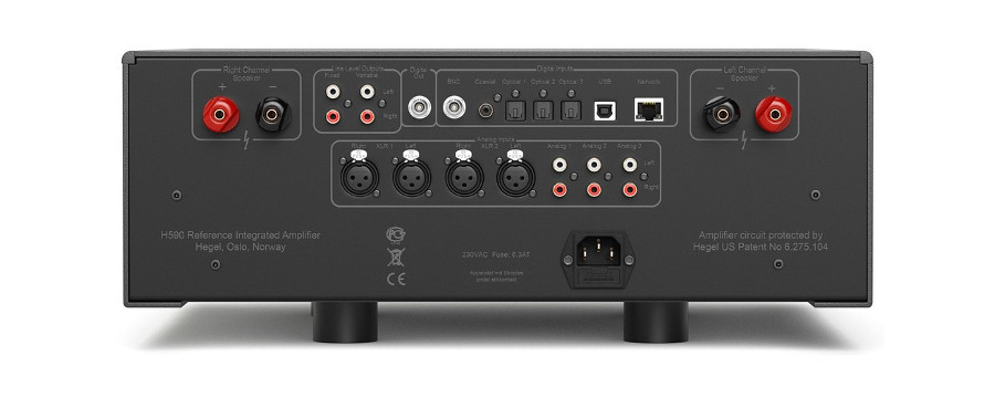 Hegel H590 jest wyposażony w starannie zaprojektowane wejcia zbalansowane i niezbalansowane, z parowanymi ręcznie tranzystorami, które zapewniają minimalne zniekształcenie delikatnego sygnału z analogowego źródła, takiego jak przedwzmacniacz gramofonowy. Poprzez sekcję przedwzmacniacza z dedykowanymi wysokiej jakości zasilaczami i unikalną regulacją głośności, aż do potężnego stopnia wyjściowego, w którym znajduje się 12 superszybkich tranzystorów dużej mocy... na kanał.