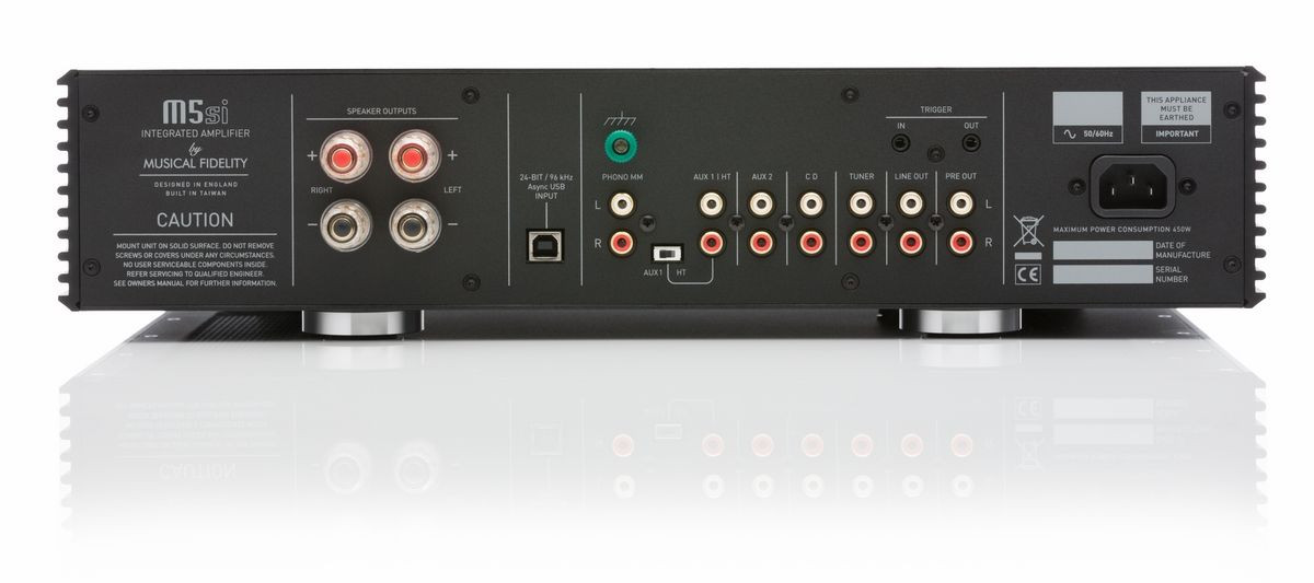 Nie oznacza to jednak, że Musical Fidelity M5si to tylko analog. Wejścia analogowe uzupełnia asynchroniczne wejście USB-B zdolne obsłużyć sygnał w jakości do 24-bit/96kHz. Przy dzisiejszych możliwościach technicznych, gdzie aplikacje strumieniowe - jak TIDAL – oferują znakomitej klasy brzmienie, takie rozwiązanie jest całkowicie zrozumiałe.