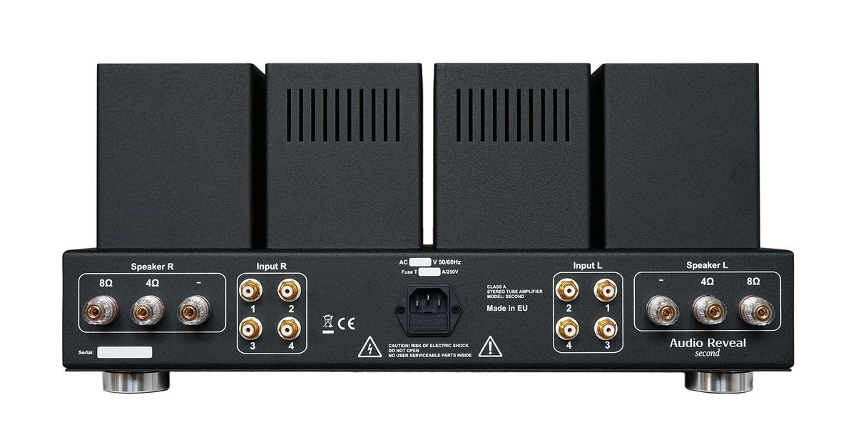 Audio Reveal Second to lampowy wzmacniacz zintegrowany. Wzorniczo elegancki, z frontem z litego egzotycznego drzewa i stalowymi gałkami. Jak zapewnia konstruktor, układ Single-Ended Dual Mono w klasie A umożliwia osiągnięcie dźwięku. Zastosowanie dwóch lamp (12AX7 oraz 12BH7) w sekcji przedwzmacniacza dało możliwość uzyskania jeszcze większej precyzji w dźwięku a układ SE w jakim pracuje lampa mocy KT150 pozwolił na uzyskanie mocy 20W RMS.