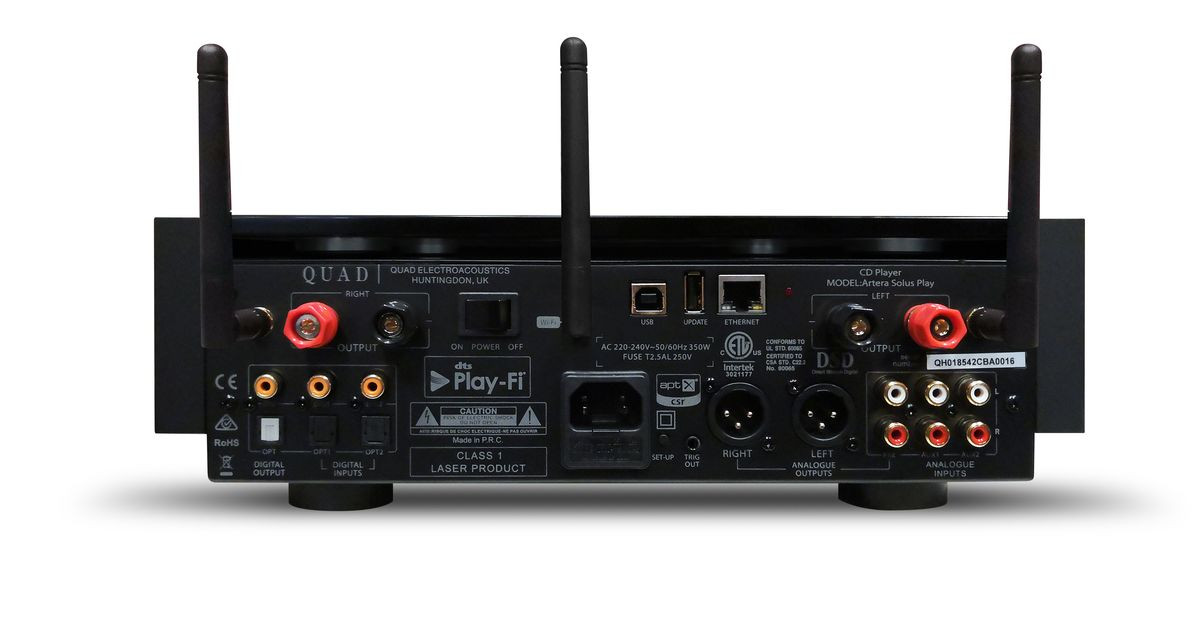 QUAD Artera Solus Play zawiera uznaną platformę DTS Play-Fi do bezprzewodowego przesyłania dźwięku w wysokiej rozdzielczości. W centrum urządzenia znajduje się ES9018 Sabre32 Reference - 32-bitowy, ośmiokanałowy, hybrydowy, układ Delta-Sigma DAC.