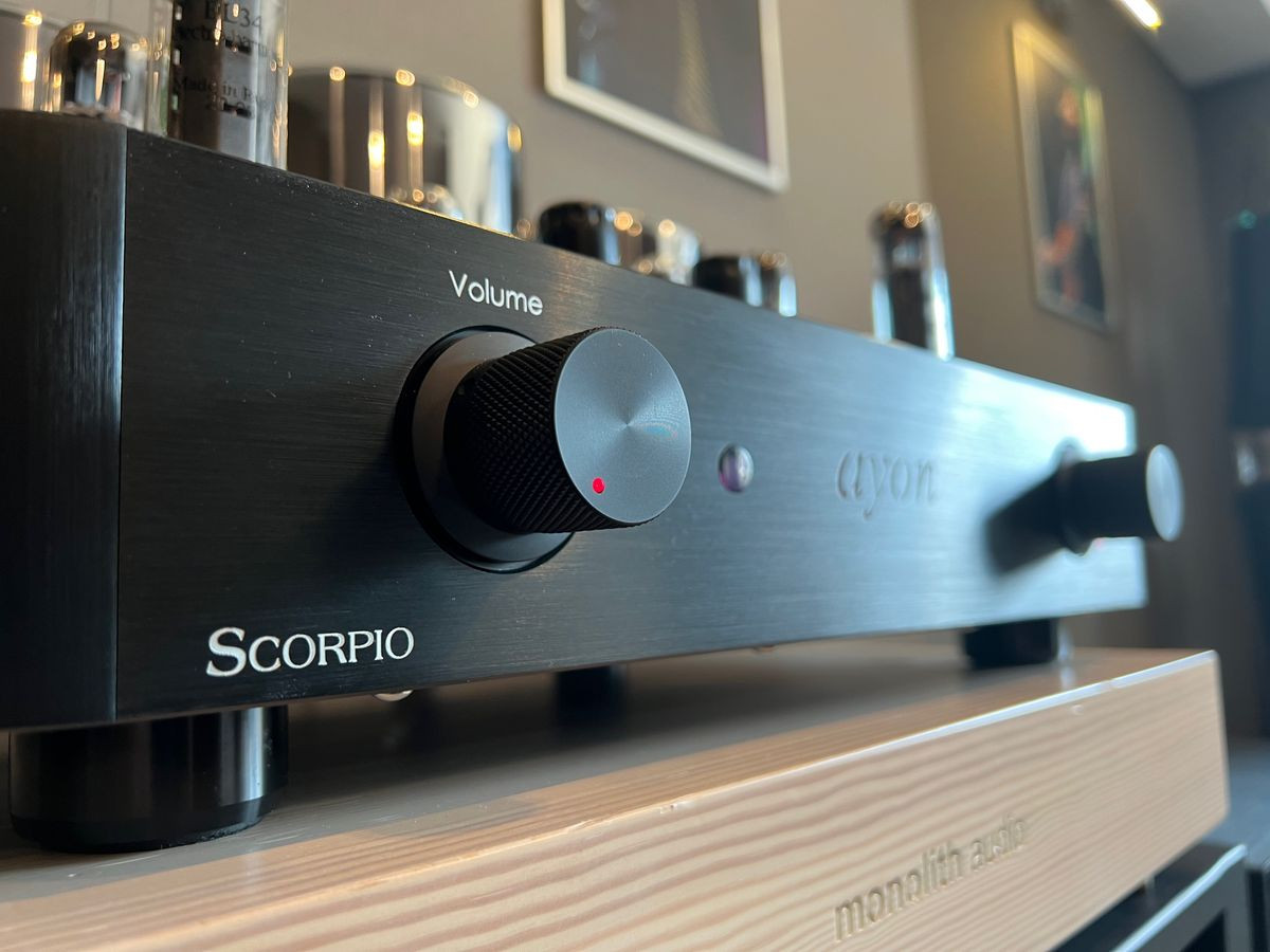 Ayon Scorpio II w pełni wyposażony wzmacniacz zintegrowany, pracujący w klasie A. Umożliwia zastosowanie w stopniu mocy lamp EL34, KT88 lub KT150. Ponownie jest to też klasyczny dla Ayona układ w czystej klasie A z zerowym sprzężeniem zwrotnym i auto-manualną regulacją BIASu.
