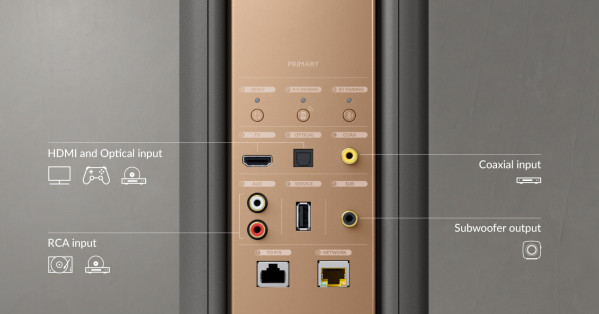 KEF-y obsługują przesyłanie strumieniowe plików PCM do 24bit/384kHz, a także dekodowanie DSD i MQA. Są wyposażone w złącze HDMI (eARC) i parę wyjść na dwa zewnętrzne głośniki niskotonowe.