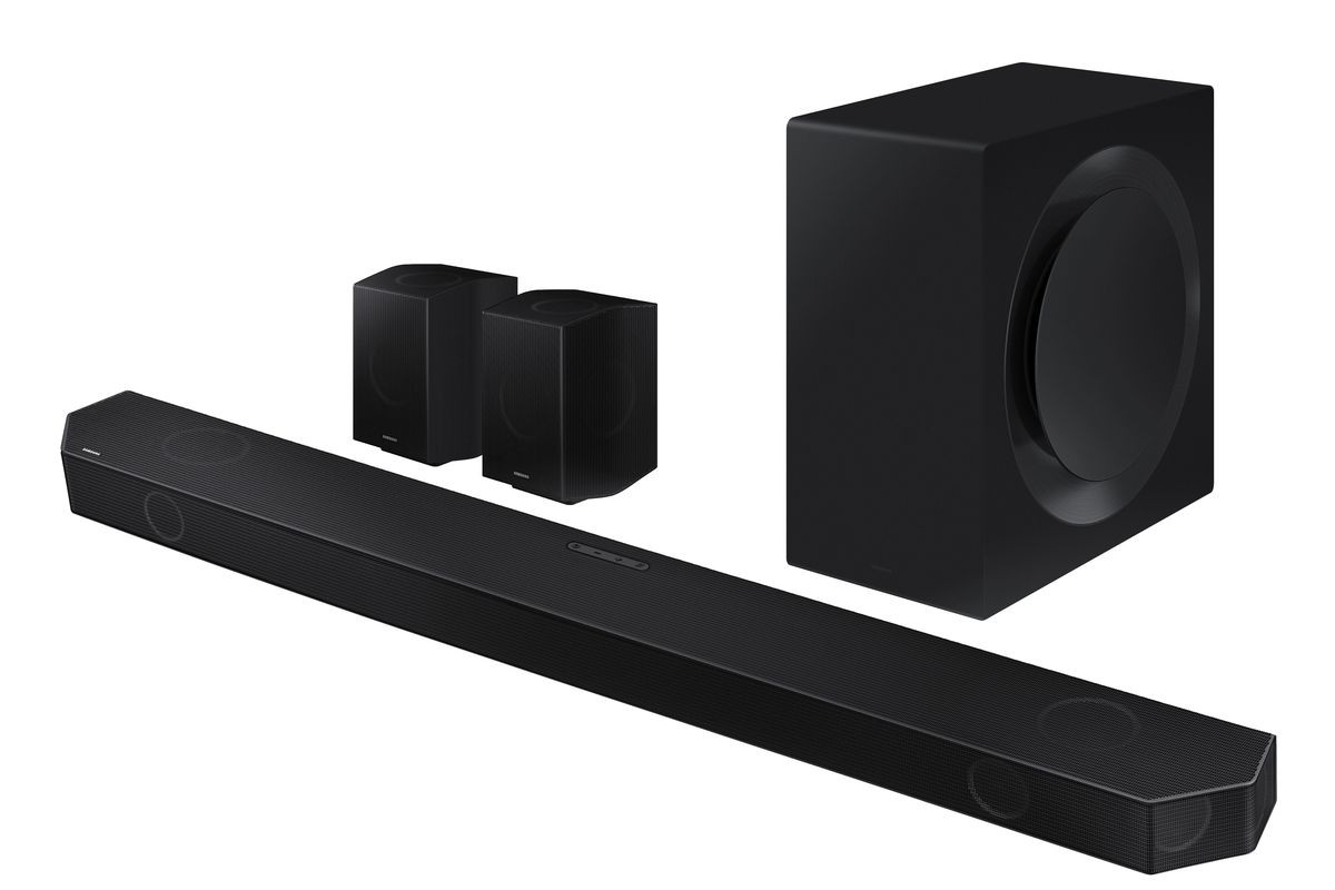 W skład Q-Serii wchodzą m.in. soundbar HW-Q930B oferujący Wielokanałowy Dźwięk Przestrzenny w formacie 9.1.4. Oznacza to aż 9 kanałów, które równomiernie rozprowadzają dźwięk, 1 niskotonowy i 4 skierowane ku górze. Wraz z tym modelem otrzymujemy Bezprzewodowe Tylne Głośniki, które sprawiają, że dźwięk odbija się od sufitu.