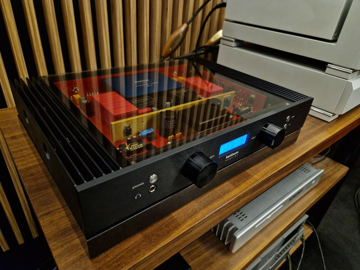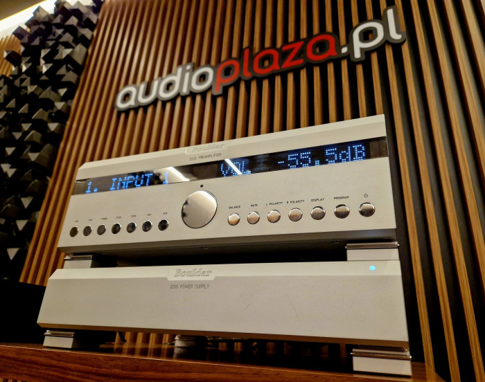 Elektronika to z kolei potężna stereofoniczna końcówka mocy Boulder Amplifiers, Inc. 2160 sterowana przez kultowy, modułowy przedwzmacniacz z zewnętrznym zasilaniem 2110.