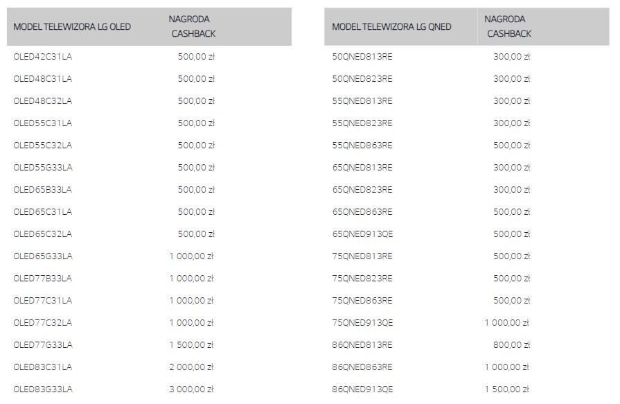 Aby wziąć udział w promocji i otrzymać Cashback nawet 3 000 zł, należy kupić jedno ze wskazanych urządzeń. Lista sklepów biorących udział w akcji obejmuje sklep online LG, LG Brand Store w Warszawie i Wrocławiu oraz stacjonarne i internetowe sklepy Media Expert, RTV EURO AGD, Media Markt, x-kom, Audio Color, Studio Hi Fi, KDK i Loco.