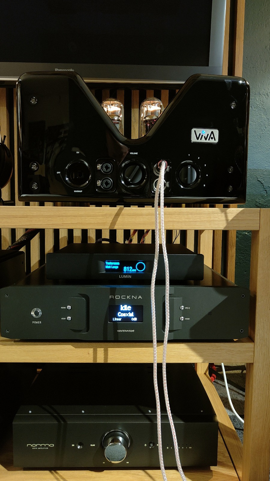 Główną atrakcją dla odwiedzających salon w Sopocie będzie powalający zestaw złożony ze - wspomnianych wyżej - słuchawek z przetwornikiem izobarycznym Twin Pulse i technologią Revolver Drive, czyli Valkyria Titanium, oraz wzmacniacza słuchawkowego na lampach 845 Viva Audio. Źródłem dla tego zestawu będzie jeden z topowych przetworników C/A Rockna Wavedream Signature sparowany z serwerem plików Wavelight WLS.