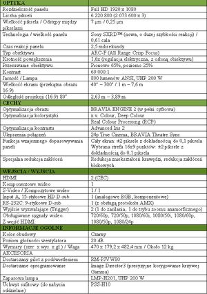 Projektor SXRD BRAVIA VPL-VW80 firmy Sony to propozycja dla pasjonatów kina domowego poszukujących rozwiązań na najwyższym poziomie. Urządzenie jest oparte na technologii paneli Sony SXRD™ (Silicon X-tal Reflective Display), która pozwala na uzyskanie niezwykle szczegółowego obrazu Full HD 1080p oraz wrażeń rodem z prawdziwego kina.