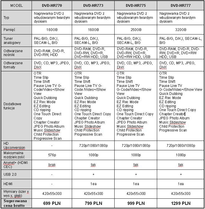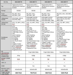 Nagrywarki DVD HDD Samsung wyróżnia twardy dysk o pojemności od 160GB do 320GB, który pozwala zachować od 264 nawet do 534 godzin nagrania. Multimedialne opcje łączności i komunikacji z innymi urządzeniami, jak Anynet (+) czy złącze USB 2.0, gwarantują szybki i sprawny dostęp do ulubionej rozrywki. Niezwykle przystępny interfejs użytkownika - wyposażony w tryb EZ REC oraz uproszczone kopiowanie i sortowanie ? został zaprojektowany w oparciu o czytelny kod wykorzystujący kolory. Dzięki tym zaletom, a także wysokiej jakości obrazu Full HD oraz praktycznym funkcjom dodatkowym (jak choćby możliwość tworzenia własnego pokazu slajdów z podkładem muzycznym), nagrywarki DVD HDD firmy Samsung należą bez wątpienia do urządzeń wyjątkowo przyjaznych użytkownikom.