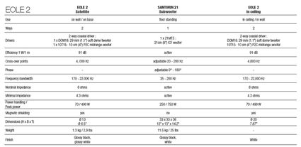 Kolejną nowością jest kompletny zestaw 5.1 - Eole 2, następce bestsellera Eole. Cabasse ulepszył pod kilkoma względami ten świetnie sprzedający się komplet. Obecnie kulki maja nowa metalowa obudowę, mniej podatna na drgania i fale stojące. Nowy jest 10cm głośnik srednio-niskotonowy o większym pasmie przenoszenia. Poprawiono sposób montowania na podstawce na półkę (głośnik można teraz obracać o 360 stopni) i standzie (jest stabilniejszy, dzięki niższej masie satelitki). Satelity wspiera zaś subwoofer aktywny Santorin 21 o mocy max. 750W i pasmie produkowanych częstotliwości 35-200Hz.