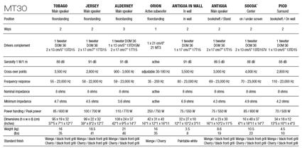Głośniki z serii MT30 charakteryzują się wybitnymi właściwościami sonicznymi oraz ponadczasowym designem. Tworzona przez nie scena muzyczna jest bardzo szeroka a zarazem precyzyjna. Pozorne źródła dźwięku są prawie namacalne. Słuchacz nie ma żadnych problemów z ustaleniem, gdzie podczas danego nagrania stali poszczególni muzycy. Wysoka jakość reprodukcji muzyki w stereo to gwarancja, że głośniki nie zawiodą w systemie kina domowego. Rzeczywiście, kino zbudowane w oparciu o komponenty Cabasse poraża realizmem, szybkością i przestrzennością dźwięku. Kolumny są łatwe do ustawienia w pokoju, mają bardzo wysoka skuteczność (max. 91dB), co umożliwia prace ze wszystkimi wzmacniaczami i amplitunerami na rynku.