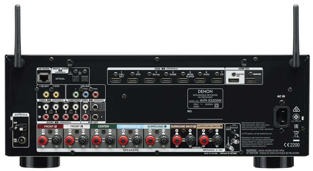 Denon AVR-X2200W jest wyposażony we wzmacniacz o mocy 150W - na jeden kanał - dla jeszcze lepszych właściwości dźwiękowych. Dzięki 8 wejściom i 2 wyjściom HDMI może współpracować z każdym odbiornikiem HDMI. Pozwala na konwersję źródła obrazu ze standardowej oraz wysokiej rozdzielczości - zarówno w przypadku analogowego jak i cyfrowego sygnału - do 4K Ultra HD.