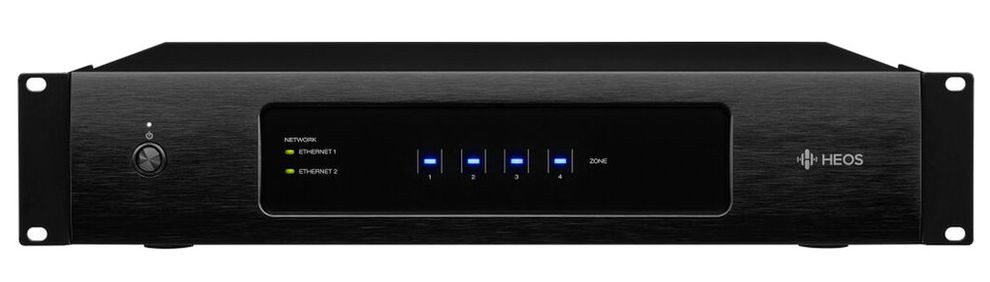 Denon Heos Drive ma potężny czterostrefowy wzmacniacz multiroom wyposażony w osiem kanałów, pozwalający na obsługę wszystkich stref HEOS za pomocą jednego urządzenia w obudowie 2RU (3,5 cala). Nadaje się do montażu w szafie.