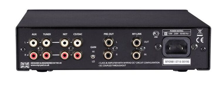 Sercem wzmacniacza Myryad Z40 jest wykonany na zamówienie, dwukrotnie przewymiarowany względem zapotrzebowania na prąd, transformator toroidalny zamknięty w metalowej obudowie. Do tego producent dołożył prostowniki Schottky`ego oraz audiofilskie kondensatory Nichicona. Oddzielną uwagę poświęcono zabezpieczeniu układów potencjometru przed jakimikolwiek zakłóceniami ze strony układu zasilania. Niemniej pieczołowicie przygotowano przełącznik źródeł, który przeniesiono wprost z hi-endowej serii MX. Wszystko to w celu uzyskania jak najniższych szumów i zniekształceń, które pozwolą na swobodną pracę urządzenia w klasie A.