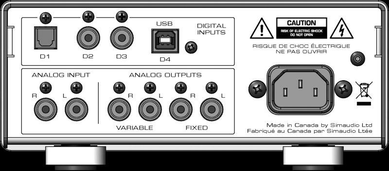 W pełni asynchroniczny przetwornik C/A obsługuje cztery wejścia (S/PDIF x 2, TosLink x 1 i USB typ B x 1) i wspiera formaty dźwięku wysokiej rozdzielczości: DSD64, DSD128, DSD256 (tylko wejście USB) oraz PCM 192 kHz/24 bity (wszystkie wejścia) i 384 kHz/32 bity (tylko USB). Całość dopełniają złącza na przednim panelu - wyjście słuchawkowe stereo mini-jack i stereofoniczne wejście jack (6,3 mm) do podłączenia źródła dźwięku.