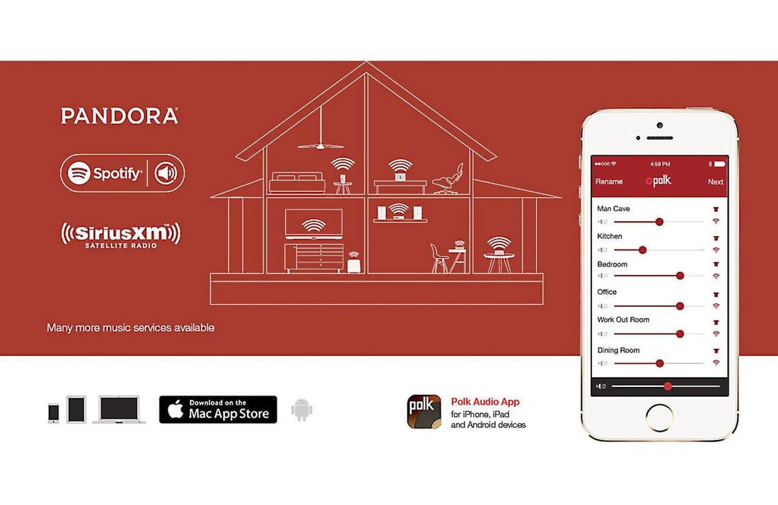 Bezpłatna aplikacja Polk Audio pozwala na słuchanie muzyki ze wszystkich popularnych źródeł cyfrowych. Każdy z domowników może operować w niezależnej strefie ze swoim urządzeniem (lub kilkoma urządzeniami). Jeden użytkownik może kontrolować kilka stref. W praktyce, każdy domownik może posiadać w swoim pokoju głośnik lub inne urządzenie Omni, na które niezależnie bezprzewodowo wysyła muzykę, lub jeden domownik może sterować kilkoma urządzeniami naraz z jednego smartfona/tabletu.