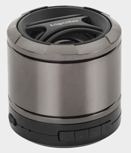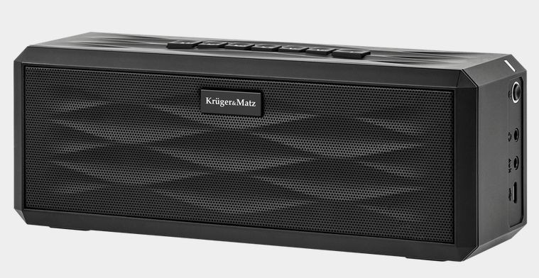 Przenośny głośnik Kruger&Matz Solo wykorzystuje 40 mm przetwornik. Dodatkowo został wyposażony w slot microSD, by odtwarzać muzykę bezpośrednio z karty pamięci oraz w wejście AUX, za pośrednictwem którego można połączyć go z urządzeniami, które nie oferują funkcji Bluetooth.
