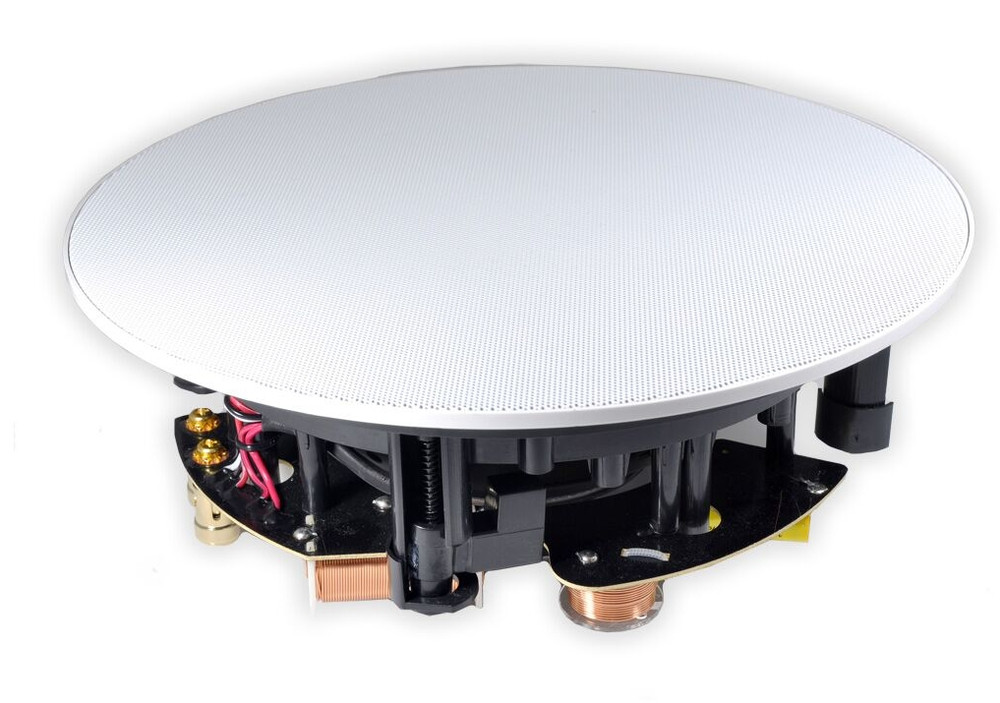 • Zewnętrzny pierścień montażowy obudowy - niezależny od stalowego, tłoczonego maszynowo kosza głośnika, pierścień mocujący z łapami blokującymi; pozwala to skutecznie ograniczyć rezonanse przenoszone z głośnika na ścianę i ze ściany na głośnik.