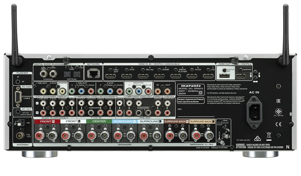 Urządzenie jest wyposażone w 8 wejść HDMI, dzięki czemu można do niego podłączyć wiele źródeł wysokiej rozdzielczości, w tym odtwarzacze Blu-ray, urządzenia streamingowe, dekodery i konsole do gier, oferujące wideo o wysokiej rozdzielczości 4K. Dodatkowo potrafi przekonwertować starsze źródła (jak np. DVD) do formatu 4K, tworząc ze starej ścieżki imponującą, przestrzenną scenę dźwiękową dzięki wykorzystaniu Dolby Surround i przetwarzaniu Neural:X. Marantz SR5012 jest oczywiście w pełni kompatybilny ze ścieżkami dźwiękowymi Dolby TrueHD i DTS:HD dla konwencjonalnego ustawienia przestrzennego 5.1 lub 7.1.