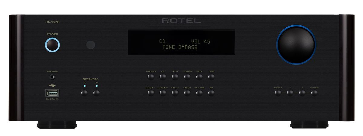 Rotel RA-1572 to następca cenionej konstrukcji RA-1570. W jednej obudowie kryje sekcję przedwzmacniacza i pracujący w klasie AB wzmacniacz o mocy 120 W na kanał (8 Ω).