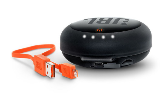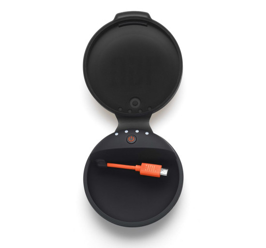 JBL Charging Case to etui z funkcją powerbanku, które jest również dostępne jako oddzielnie sprzedawany produkt. Zapewnia odpowiednią ochronę słuchawek, a przede wszystkim pozwala na przedłużenie ich czasu pracy nawet o 16 godzin. Jest niewielkie i wystarczająco lekkie, by zmieścić się do kieszeni.