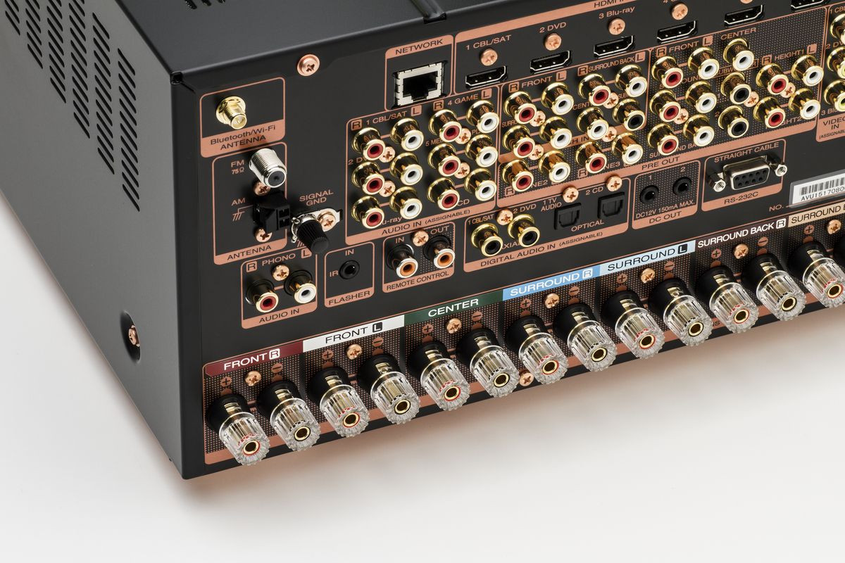 Sekcja audio umożliwia dekodowanie plików bezstratnych ALAC, FLAC i WAV do 24-bit / 192-kHz oraz ścieżki DSD 2.8MHz i 5.6MHz za pośrednictwem przedniego panelu portu USB jak i z źródeł sieciowych. Amplituner obsługuje również Apple AirPlay i Bluetooth.