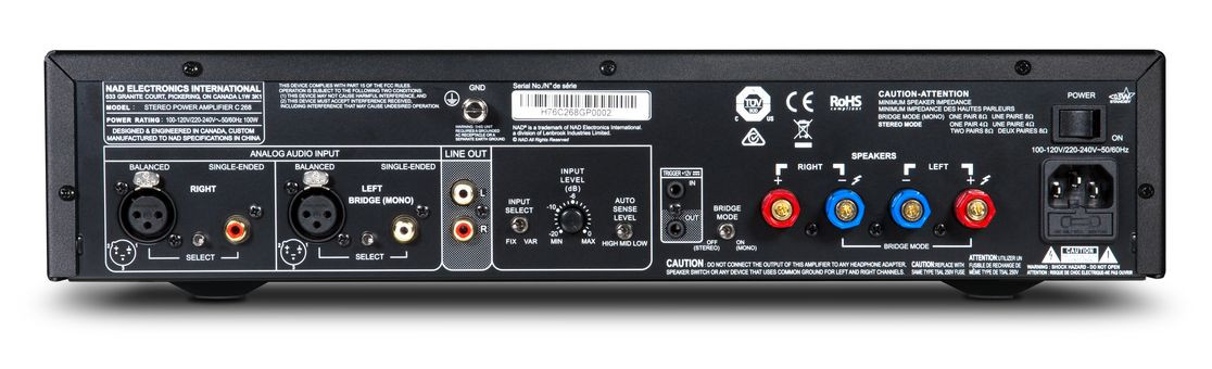 NAD C 268 może być podstawowym wzmacniaczem mocy, ale NAD dokładnie przemyślał wszystkie możliwe konfiguracje, zazwyczaj wykorzystywane podczas tworzenia funkcjonalnych rozwiązań. Wybieralne wejścia zbalansowane sprawiają, że C 268 idealnie sprawdza się w studiu lub w połączeniu z high-endowymi przedwzmacniaczami i procesorami. Wejścia współpracują z funkcją regulacji czułości, wykorzystywaną do dopasowania końcówki mocy do innych komponentów lub podczas pracy w układzie bi-amping. Wyjście liniowe pozwala na dalsze zwiększenie mocy w tym samym kanale dla dodatkowych głośników lub subwooferów.