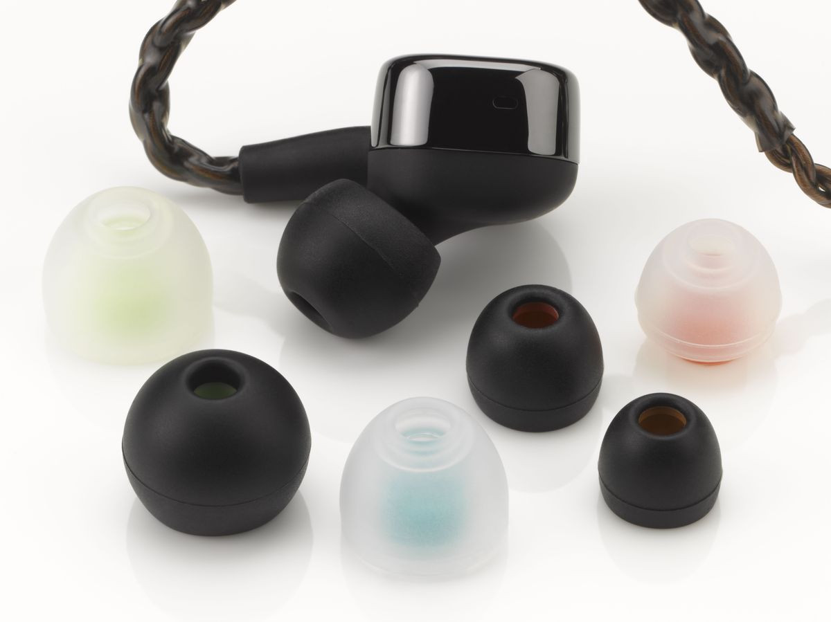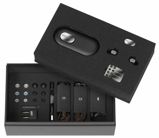 Słuchawki są wykonane z czarnej lśniącej ceramiki i wyposażone w silikonowe wkładki w czterech rozmiarach oraz wkładki typu spinfit w trzech rozmiarach (S, M, L). W zestawie znajduje się również futerał.