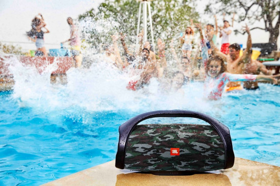 JBL Boombox ma wodoszczelną obudowę (stopień ochrony IPX7) i jest wyposażony w akumulator litowo-jonowy o pojemności 20 000 mAh, dzięki czemu jedno ładowanie wystarcza, aby słuchać muzyki nawet przez całą dobę (do 24 godzin). Jest wyposażone w podwójne wyjście do ładowania. Oferuje różne tryby odtwarzania pozwalające zoptymalizować ustawienia – w zaleności od tego, czy używamy głośnika w pomieszczeniu, czy na zewnątrz.